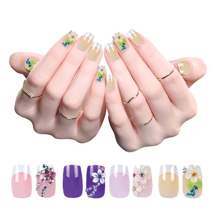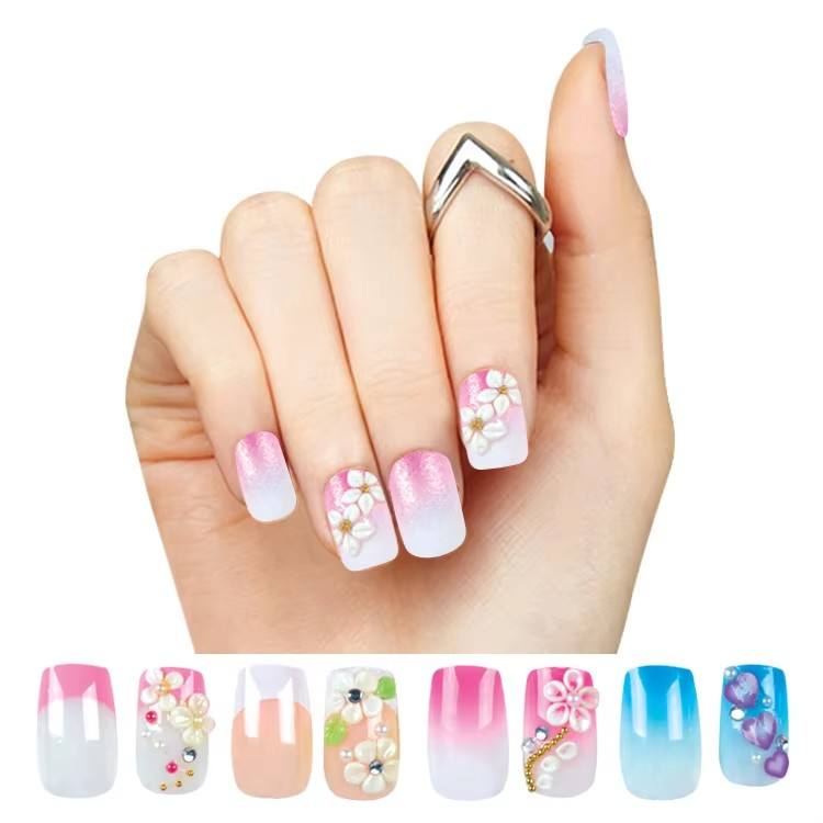 NUOVO Stile Unghie Finte 3D 24 Pezzi in ABS Pre-Disegnate con Gradiente Perlato Colorato, Unghie Preincollate per Donne