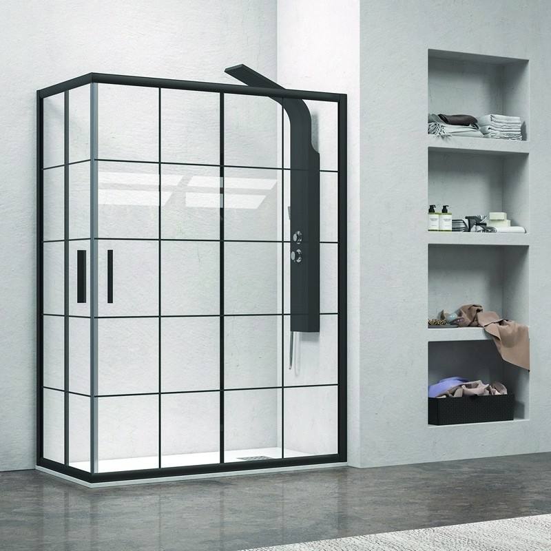 NICO-B1000 Kamalu Modern Frameless Shower Enclosure 130x80 Matt Black Glass Black Squares for Bathroom Tempered Glass Aluminium