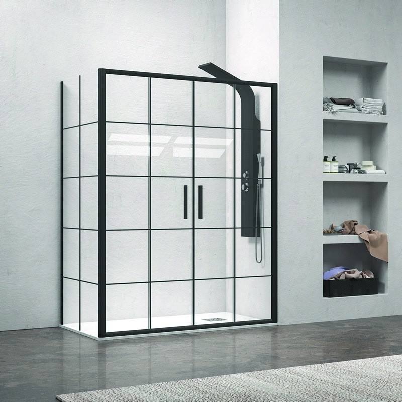 NICO-D6000S Kamalu Moderna Cabina Doccia Angolare 160x70 con Doppia Porta Scorrevole, Telaio in Alluminio Nero, Impermeabile, Stile Quadrato