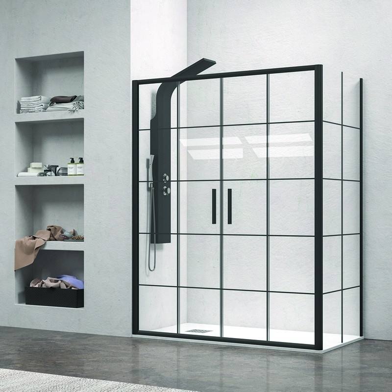 NICO-D6000S Kamalu Moderna Cabina Doccia Angolare 160x90 con Doppia Porta Scorrevole e Telaio in Alluminio Nero Impermeabile Stile Quadrato