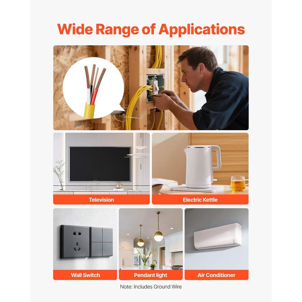 Cavo Elettrico NM-B 6AWG/3C Non Metallico per Interni Residenziali, con Anima in Rame ad Alta Purezza, 50 Piedi, Rivestimento in PVC, Cavo di Terra per Cablaggio