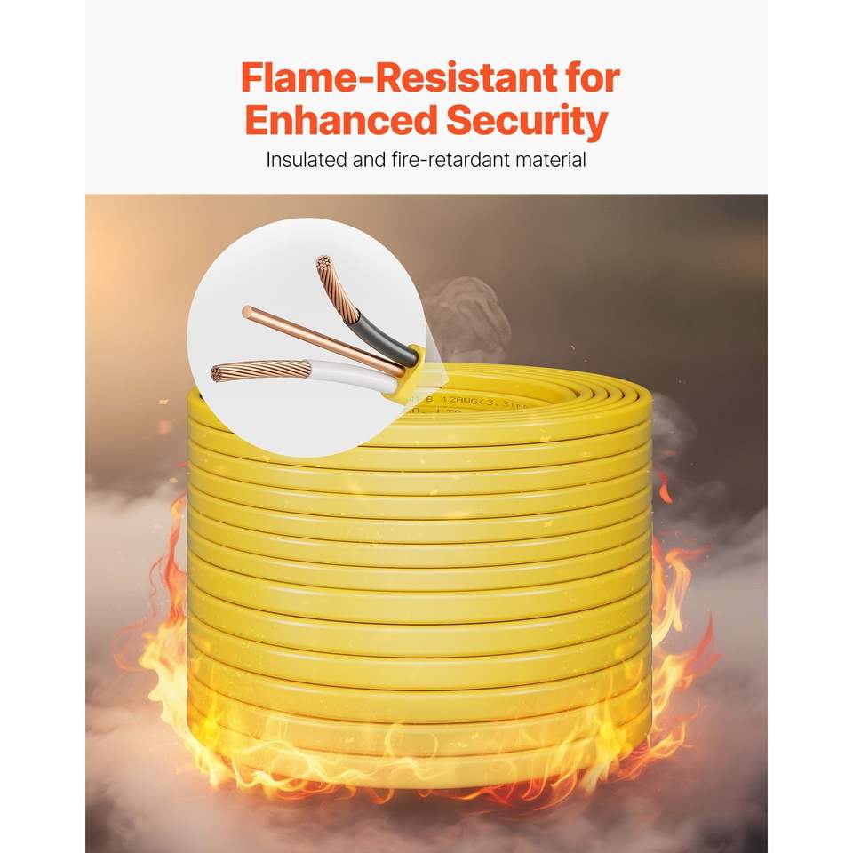 Cavo Elettrico NM-B 12AWG/2C con Anima in Rame ad Alta Purezza, per Uso Residenziale Interno, con Guaina in PVC, Non Metallico, per Uso Domestico