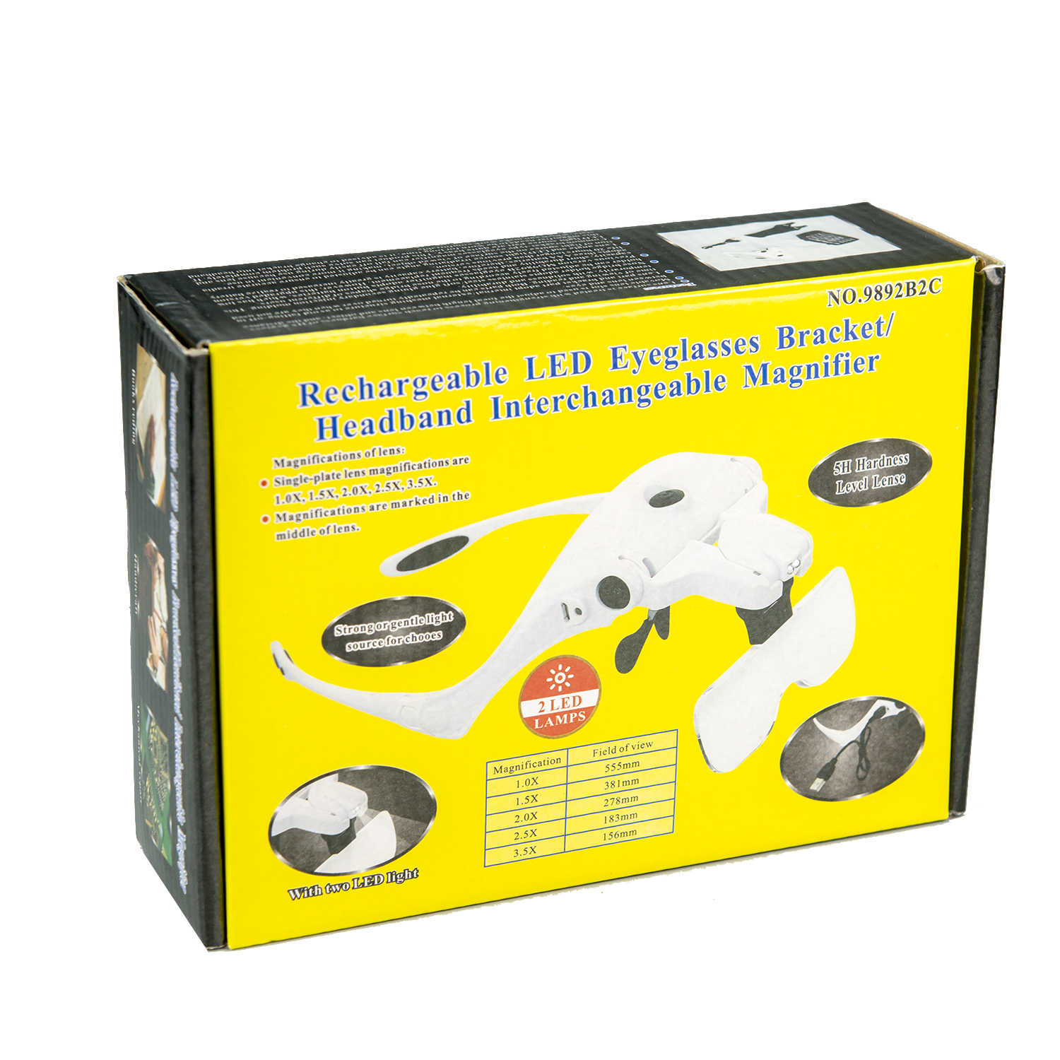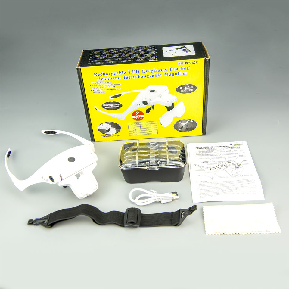 NO.9892B2C Occhiali Ingrandenti LED Ricaricabili con 5 Lenti, Lente d'Ingrandimento a Fascia per la Testa 1.0X - 3.5X