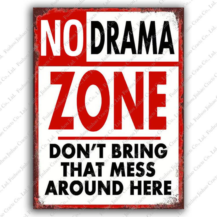 Nessuna zona drammatica non porta quel casino qui intorno Vintage segno di latta decorazione da parete Custom 8 "X12" segni di metallo antico in vendita