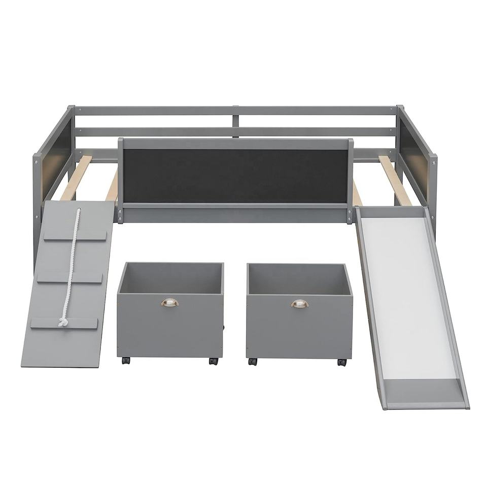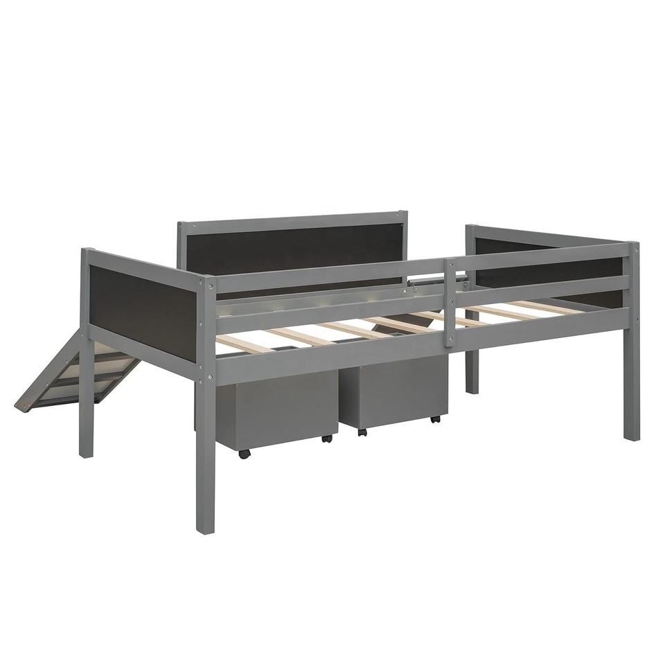 NOVA Boys Girls Teens Bedroom Wooden Low Single Loft Bed Frame With Slide & Storage & Climbing Ladder & Chalkboard