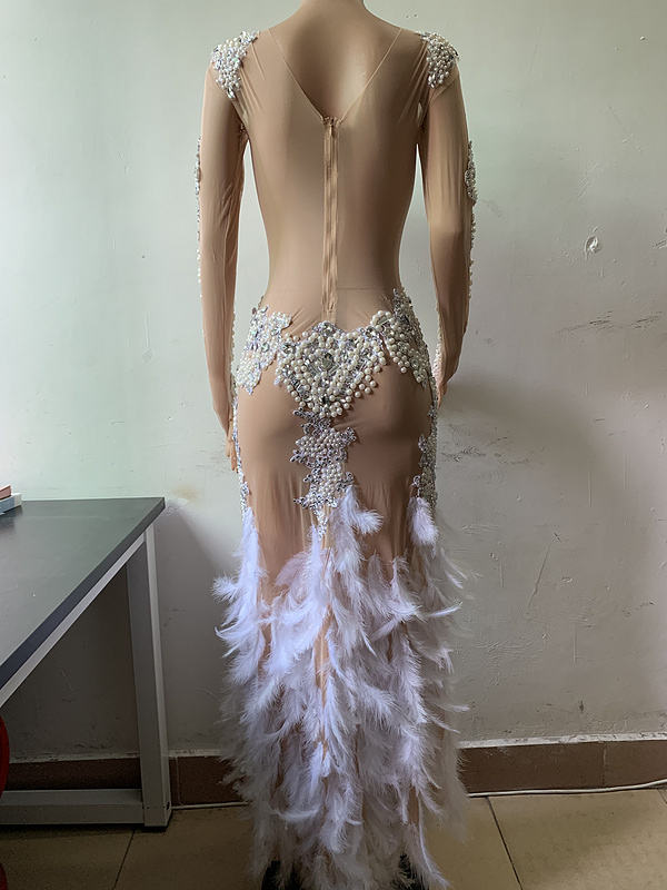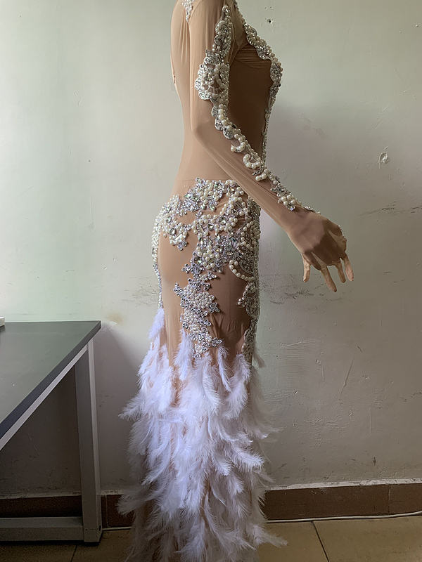 NOVANCE Y1637 Vestidos De Gala Shiny Crystals Elegant Pearls White Feather Robe Evening Dress for Prom Party
