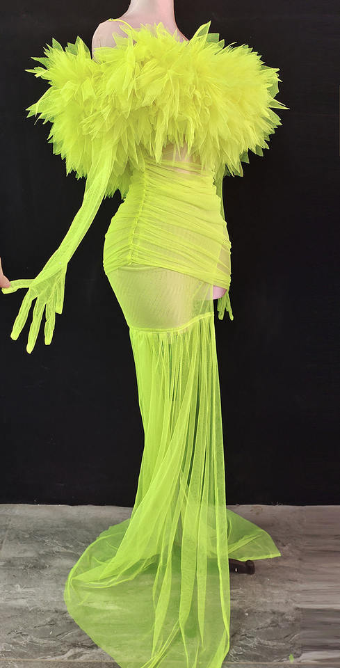 NOVANCE Y2455 Ladies Fashion Sexy Yellow Tulle Detachable Tail Slip Dress Even Dress Transparent Glamourous Dress for Party