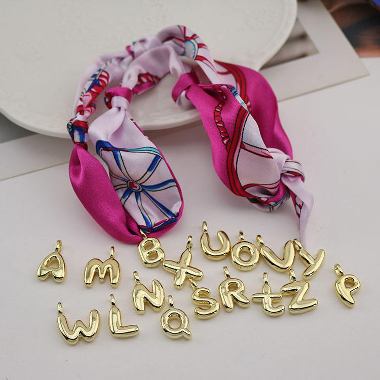 NSC1025 placcato in oro 18K palloncino rilassata bolla 3D Puffy a sbuffo lettera monogramma ciondolo iniziale sciarpa in seta annodata collana Bandana