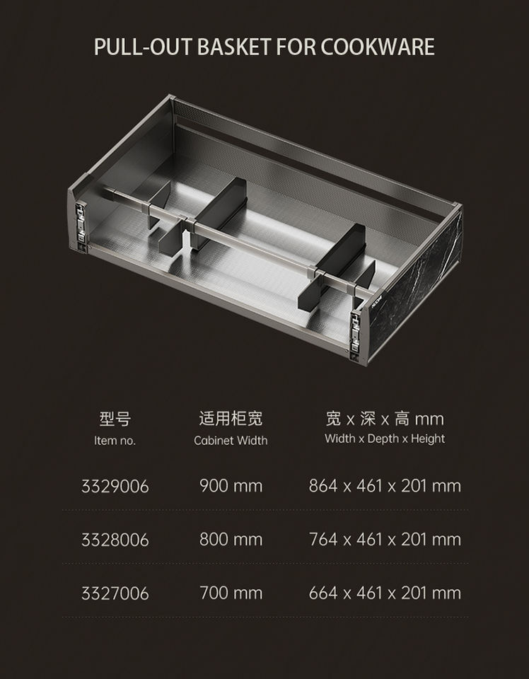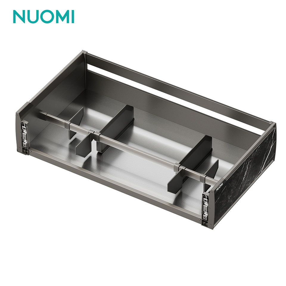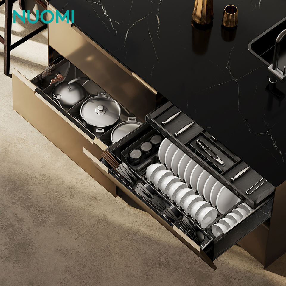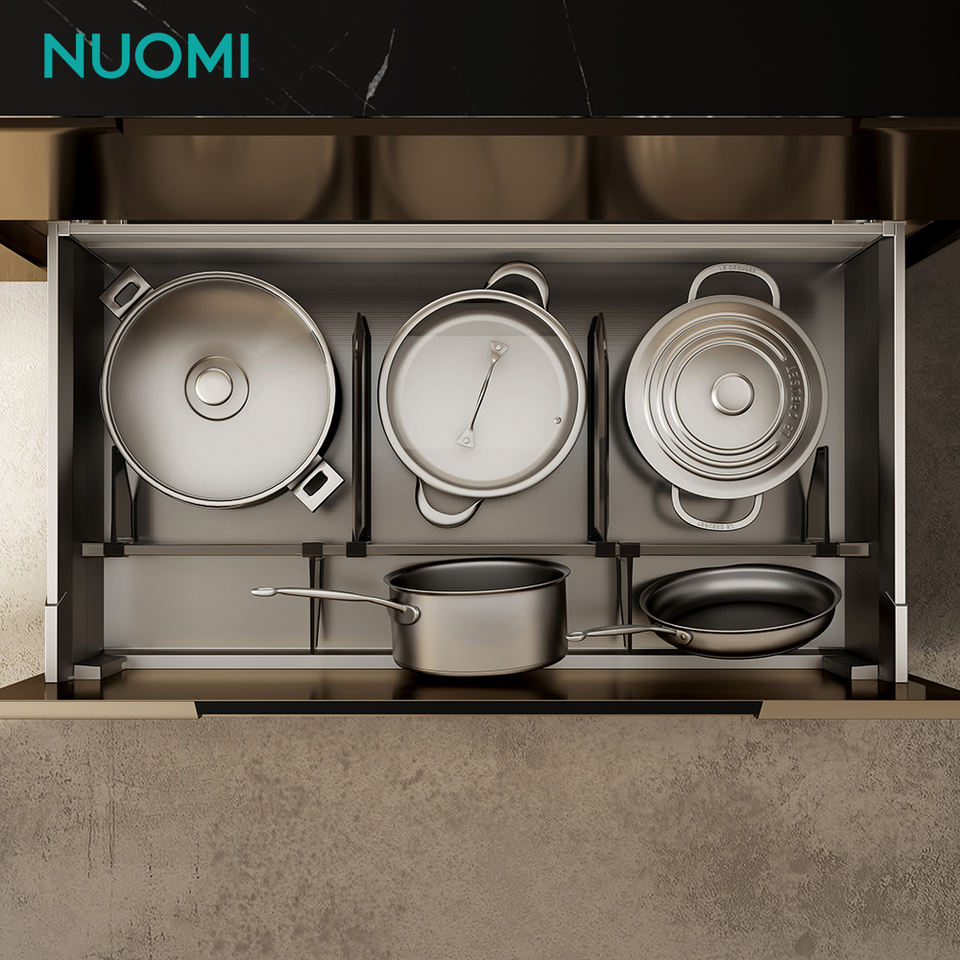 NUOMI HORUS Soluzione di Stoccaggio per Mobili da Cucina, Organizzatore per Cassetti per Pentole e Padelle, Divisorio Regolabile, Cestello Estraibile per Utensili da Cucina