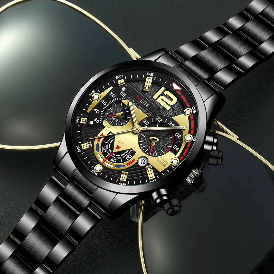 Orologio da Uomo NYY Popolare e Vendutissimo, Multicolore con Lancette Luminose, Numeri Grandi, Calendario, Cinturino in Acciaio, Display Analogico