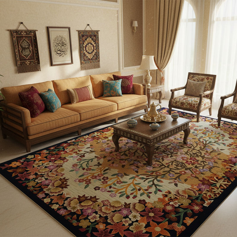 NZ Wool Bamboo Silk Turkish Persia Style Carpet Custom Stylish Flower Pattern Texture Hand Tufted Rug for Living Room