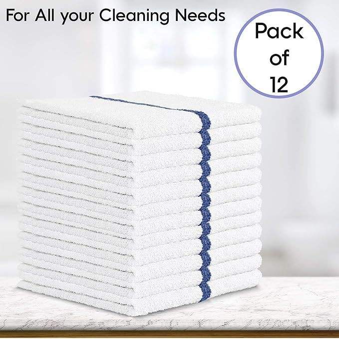 Nabob Set di 12 Strofinacci da Cucina e Bar in Cotone 100%, Misura 14x17, per Uso Domestico in Cucina e Bagno