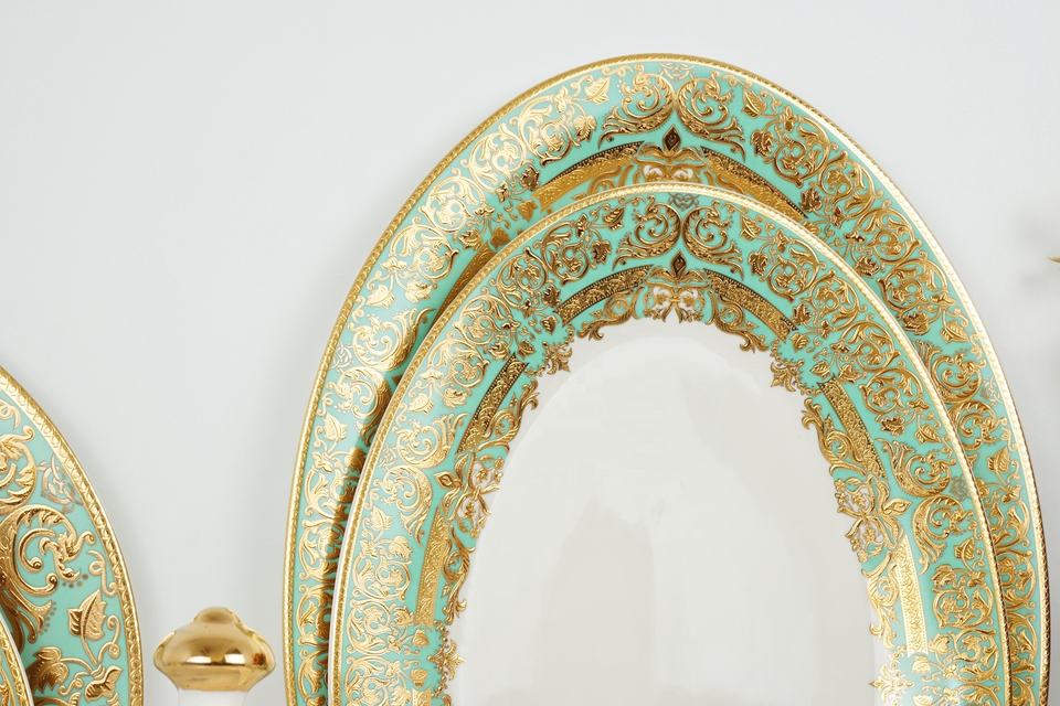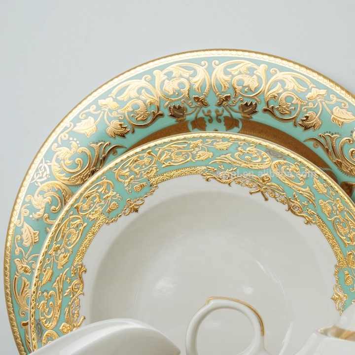 Nabor new bone china 50 pezzi in rilievo oro cena set di stoviglie reali stoviglie di lusso