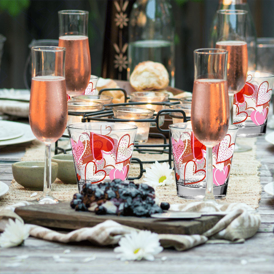 Set di 3 bicchieri da acqua decorati Heart to Heart Nadia da 250 ml, set per servire bevande