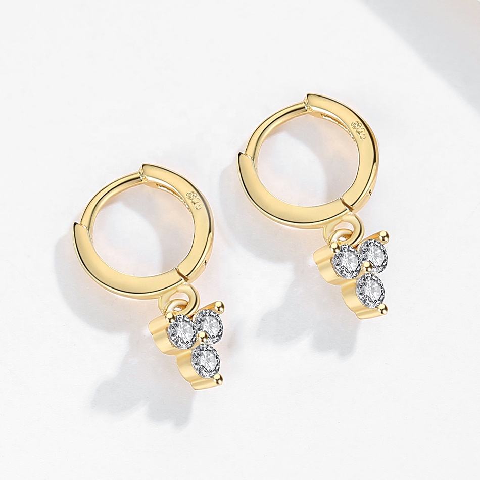 Nagosa Fashion Women Jewelry 925 Sterling Silver Sparkly Cubic Zirconia Hoops 18K Gold Vermeil Trio Drop Earrings