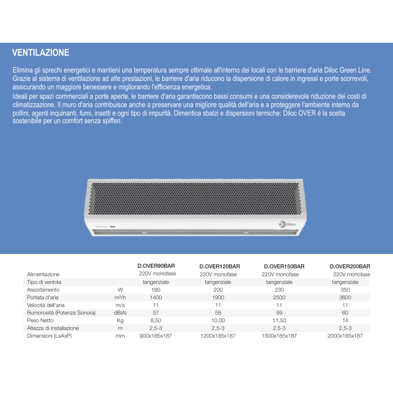 Porte Commerciali con Barriera d'Aria Naicon Diloc Green Line 200cm