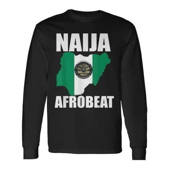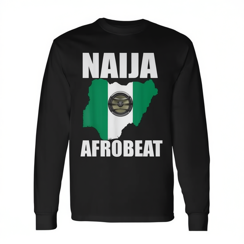 T-Shirt Unisex per Adulti con Stampa Digitale a Maniche Lunghe, Design con Mappa della Nigeria, Tema Musicale Afrobeat Nigeriano