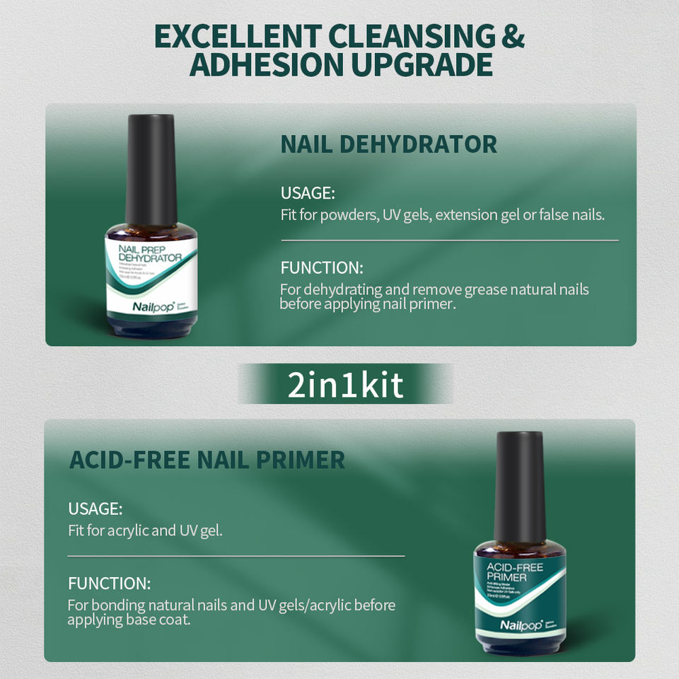Nailpop Nail Prep per smalto per unghie in acrilico e Gel UV Fast Dry superiore incollaggio disidratore unghie e Primer acido libero naturale Set
