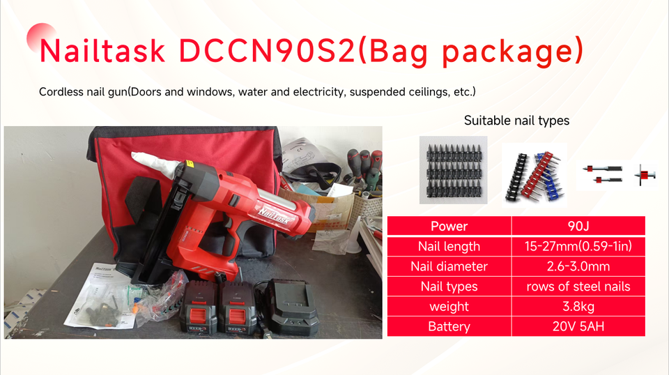 Strumento per chiodatrice a batteria Nailtask DCCN90S2, chiodatrice senza fili per cemento
