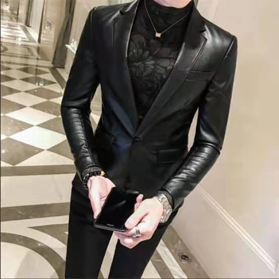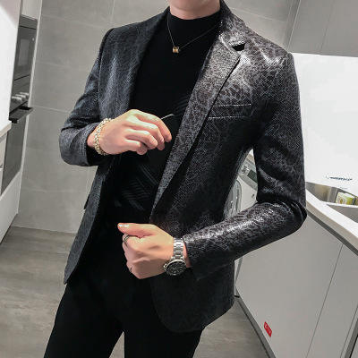 Giacca in Pelle da Uomo con Stampa Leopardata Nanchang Xihui, Blazer Elegante e Alla Moda, Vestibilità Slim
