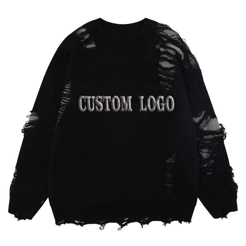 Maglione Pullover da Uomo Nanteng con Logo Personalizzato a Lettere, 100% Acrilico, Stile Hip Hop Street Fashion, a Girocollo e con Strappi