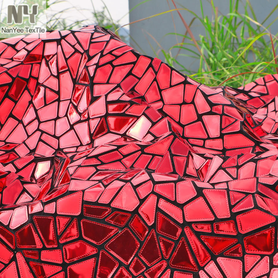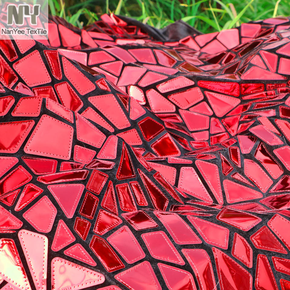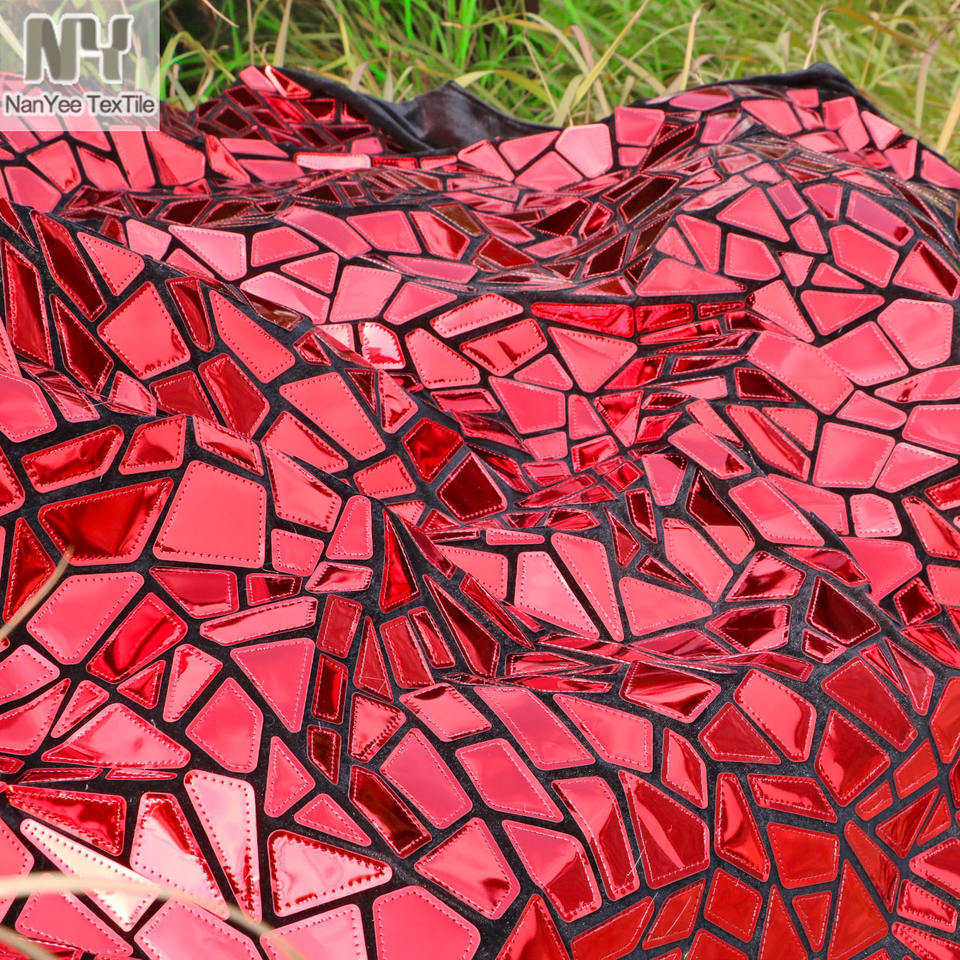 Tessuto in Velluto Rosso Intenso con Paillettes Ricamate e Trama a Blocchi Metallizzati di Nanyee Textile