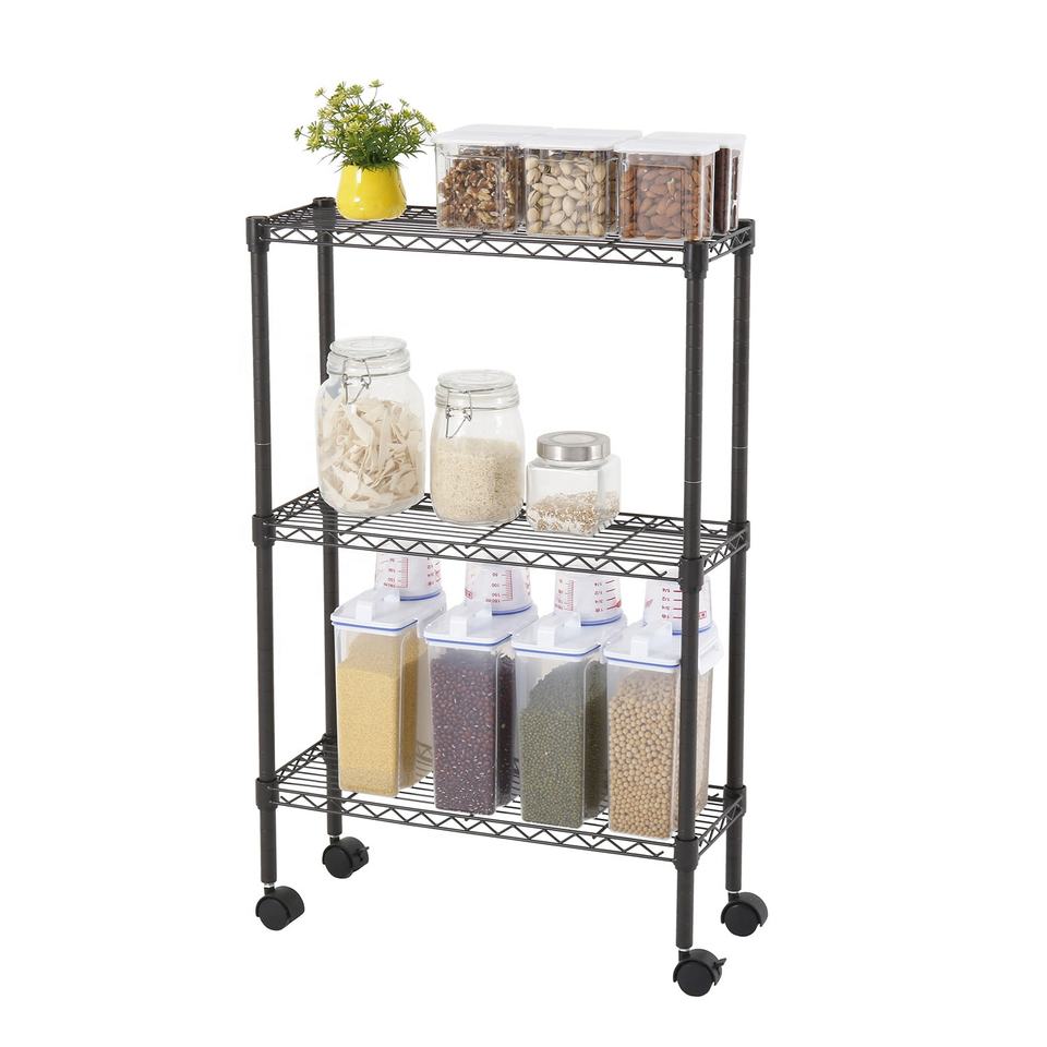 Carrello portaoggetti sottile a 3 livelli con ruote