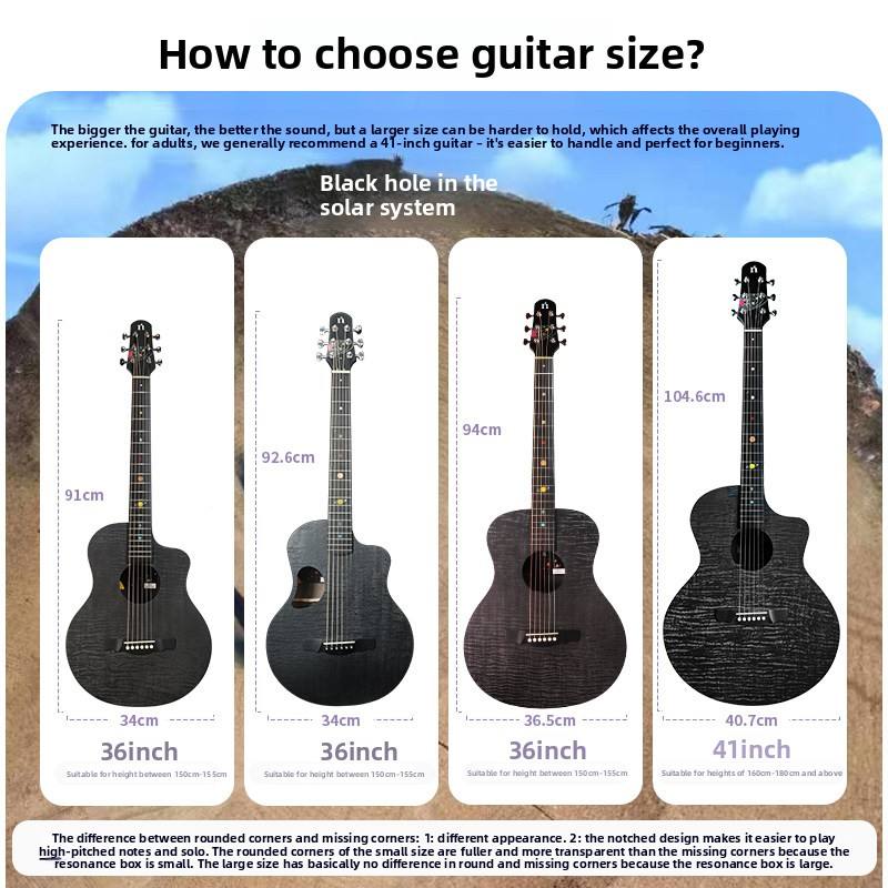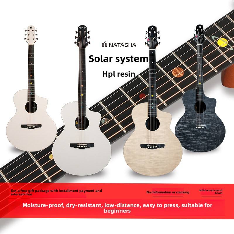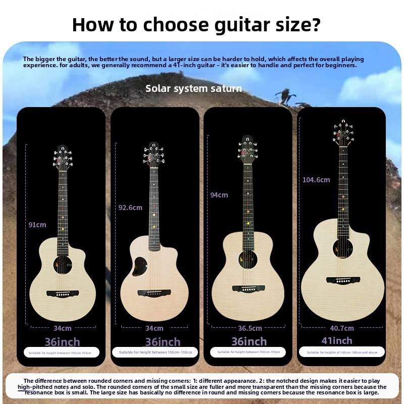 Chitarra Acustica Natasha Solar System Mercury Saturn Black Hole HPL Interamente in Legno Massello 36/41 Pollici con Tastiera in Ebano per Principianti