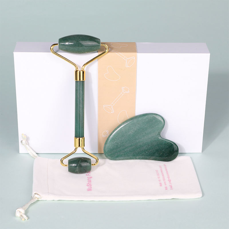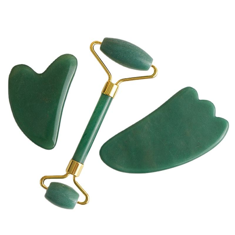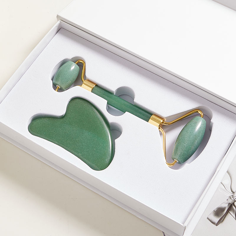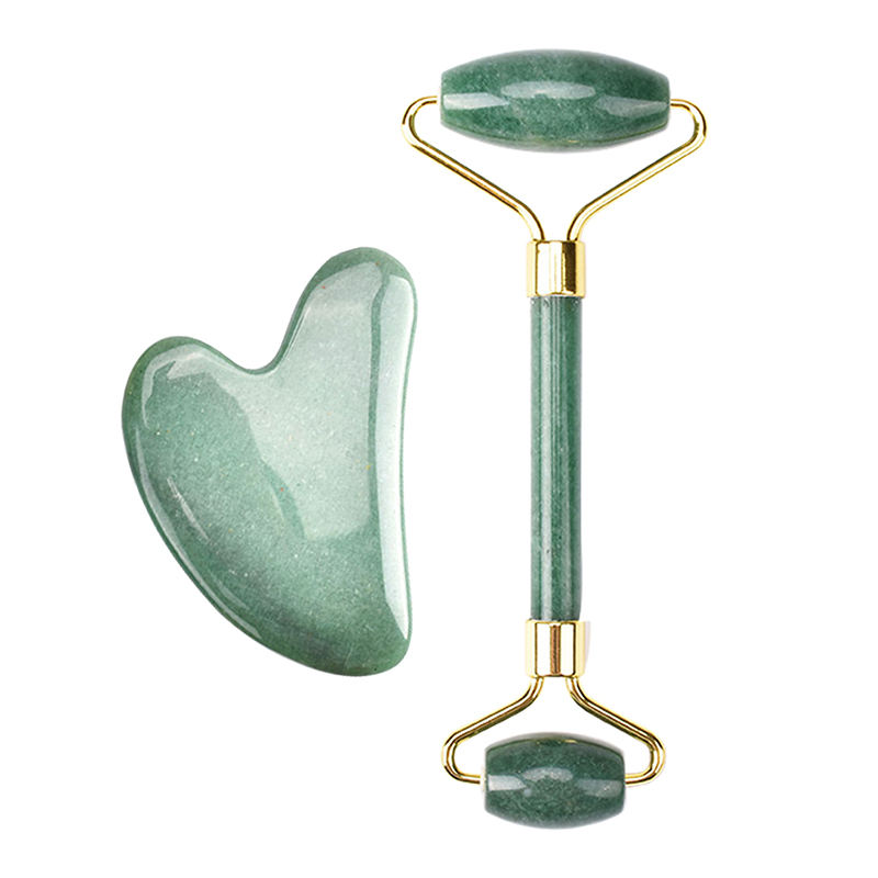 Natural Anti-Aging Jade Facial Massager with Double Rollers for Face & Neck Therapy-Portable Design