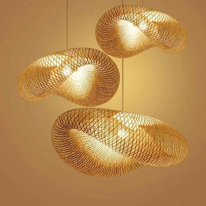 Lampada a Sospensione Artistica Naturale in Bambù e Rattan per Ristorante