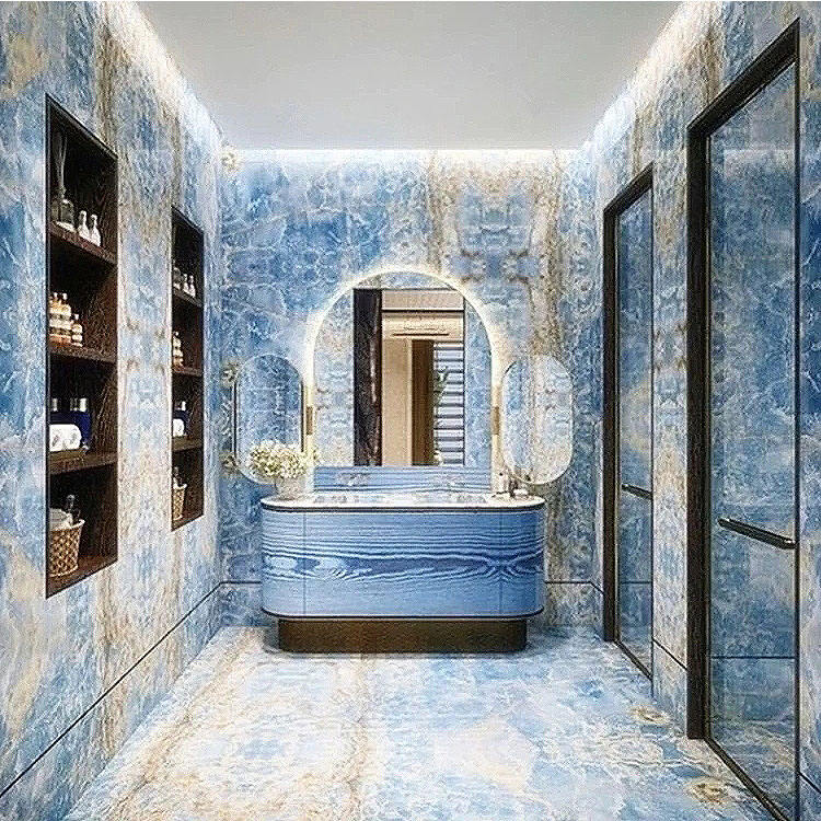 Lastra di Marmo Onice Blu Naturale Bellissima Retroilluminata Pietra di Onice Blu Traslucida