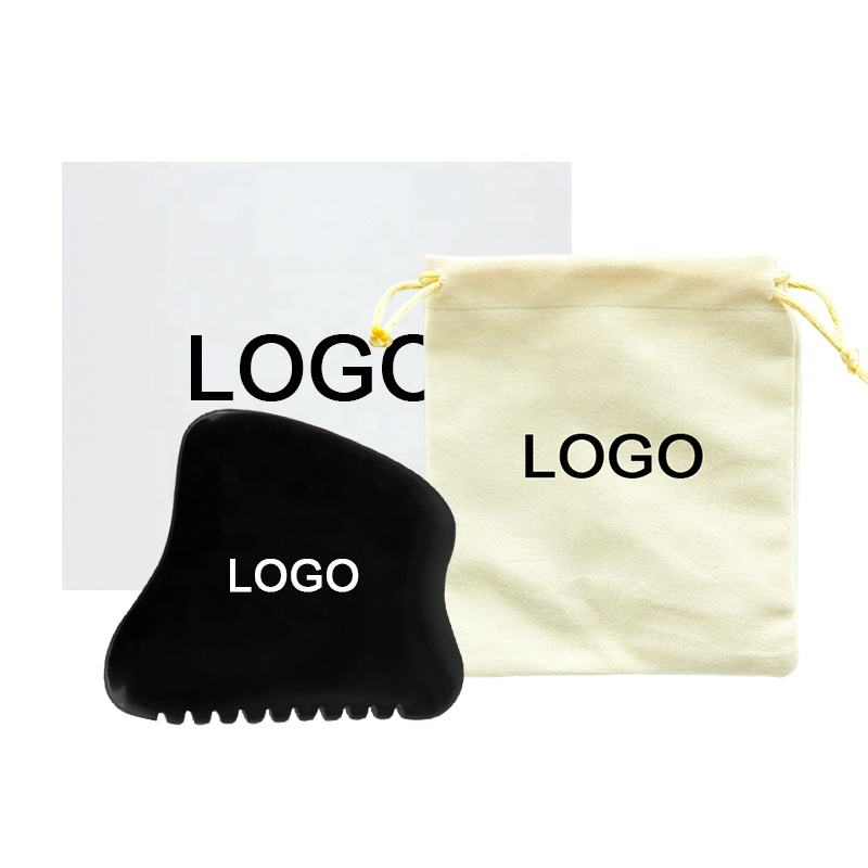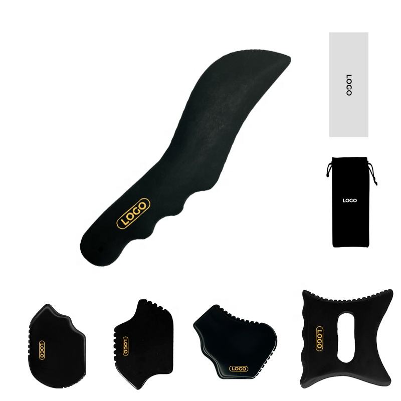 Pietra Bian naturale Guasha con Logo viso massaggiatore Anti-rughe nero giada Bian Stone corpo Gua Sha faccia nera Bian Stone Gua Sha