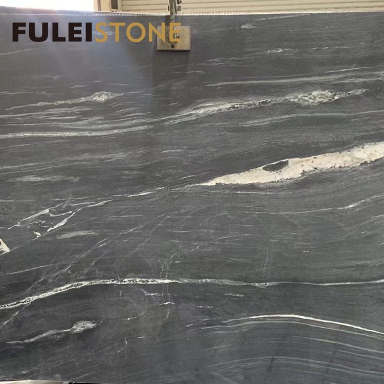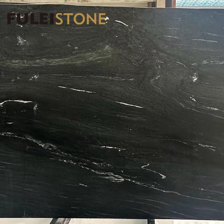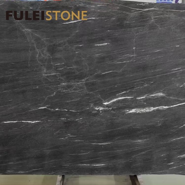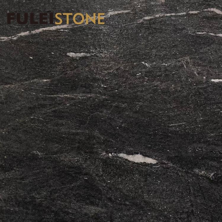 Lastre di Pietra Ollare Nera Naturale con Venature Bianche