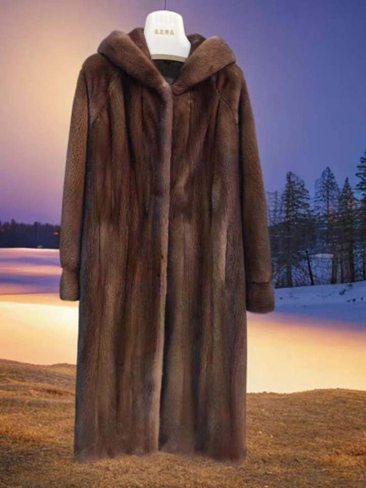 Natural Brown Mink Fur Coat Supper Quality Winter Women Classic Mink Fur Coat With Hood
