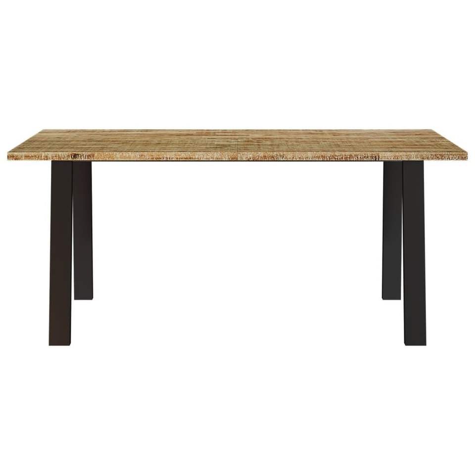 Tavolo da Pranzo con Piano in Legno Naturale Marrone e Gambe Nere