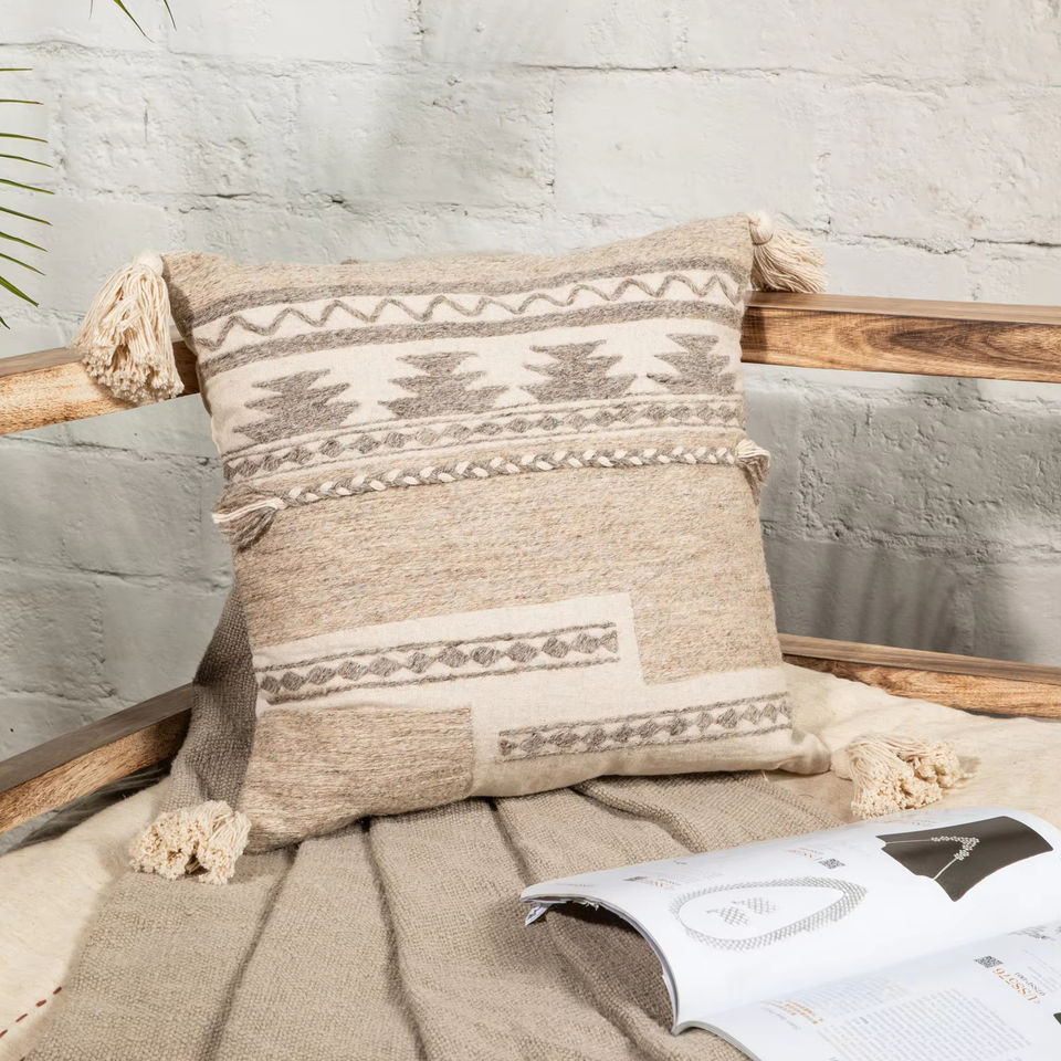 Natural Cotton Flax Pillow Cover Retro Bohemian Geometric Design with Tassel Details Vintage Style Cushion OEM/ ODM INDIA