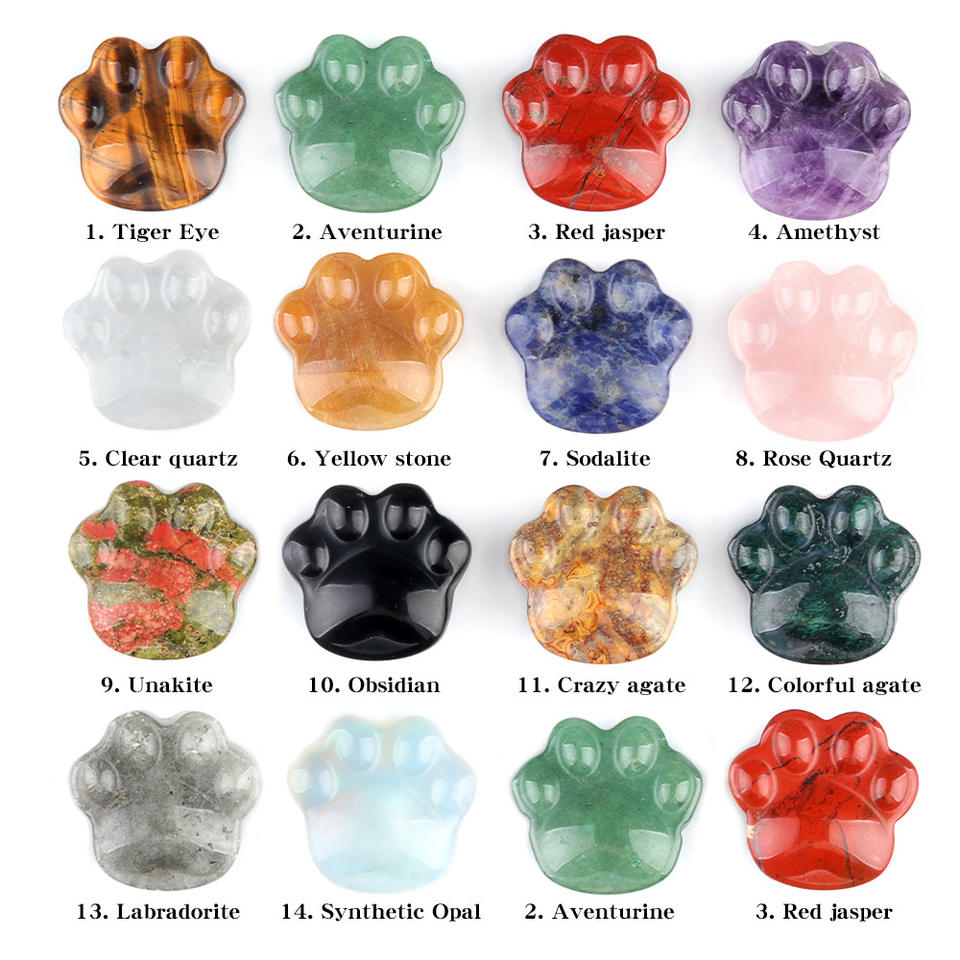 Natural Crystal Carving Craft Semi-Precious Stone Amethyst Carved Cat's Claw Clear Quartz Bear's Paw for Gift