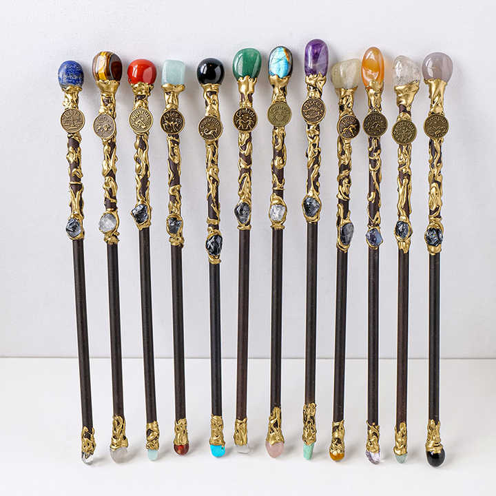 Natural crystal raw stone twelve constellations scepter magic wand