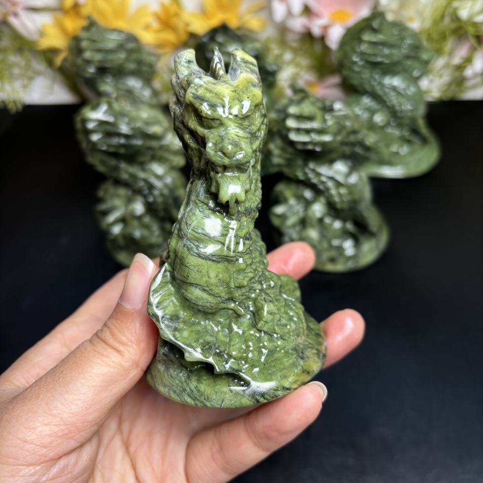 Natural Crystal Rock Stone Machine Carved Green Jade Dragon Carvings Crystal Crafts for Home Decoration