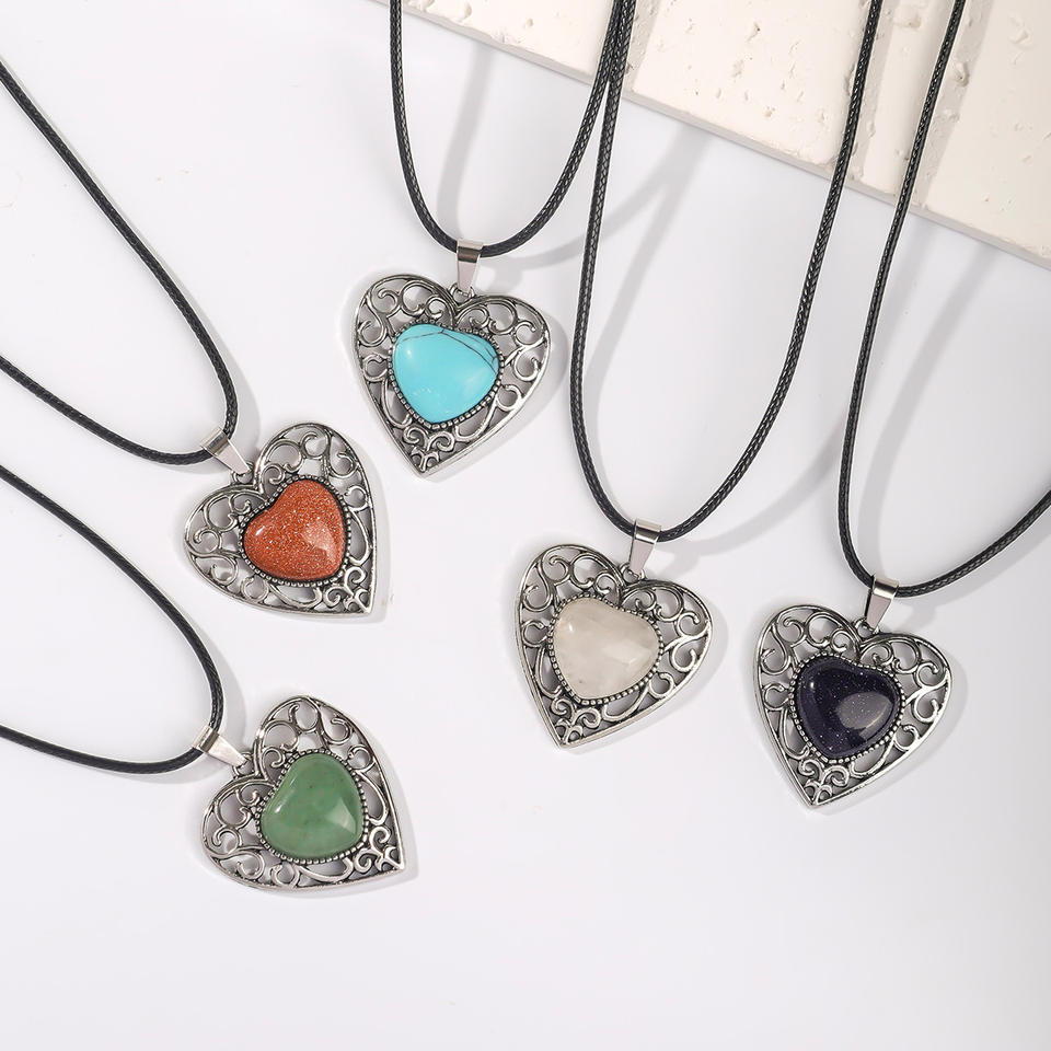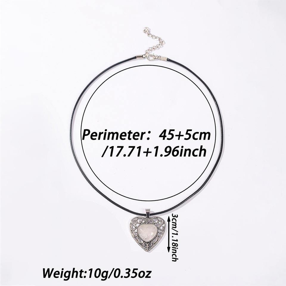 Collana con Ciondolo a Cuore Traforato in Cristallo Naturale di Quarzo Rosa, Catena a Corda alla Moda