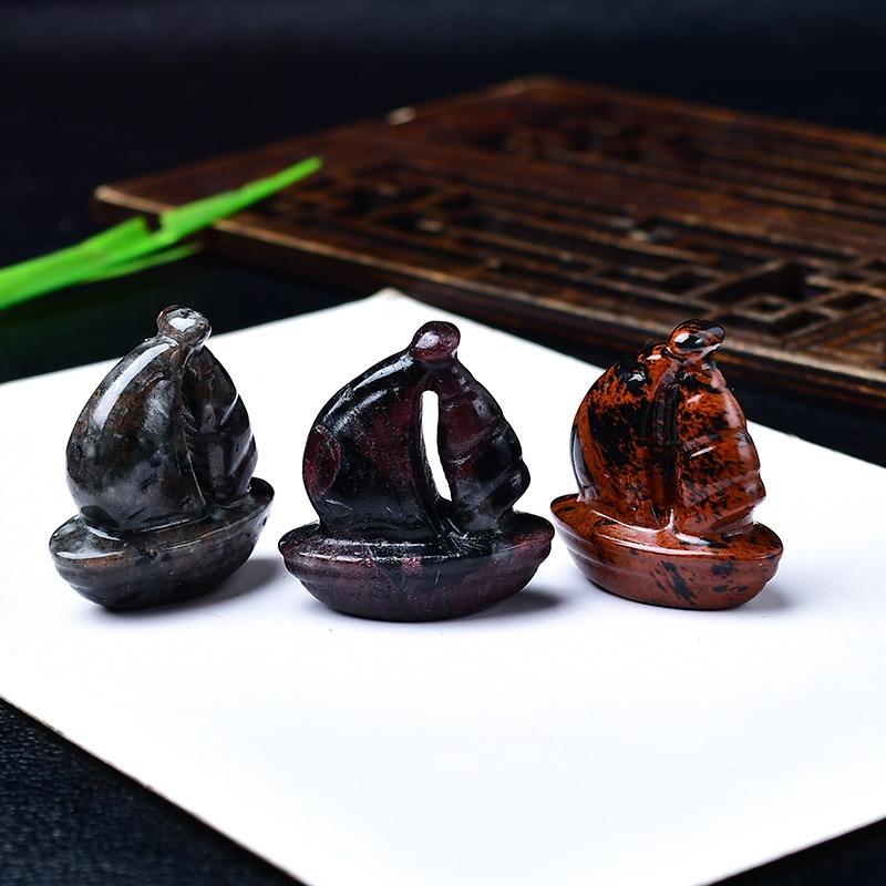 Statua della barca a vela di cristallo naturale che naviga liscia decorazione per soggiorno di famiglia armadietto del vino libreria regalo