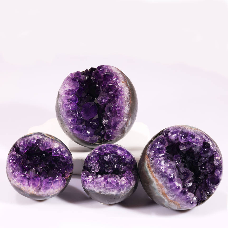 Natural Crystals Amethyst Druzy Crystal Ball Amethyst Agate Geode Sphere With Smiling for Decoration Gift