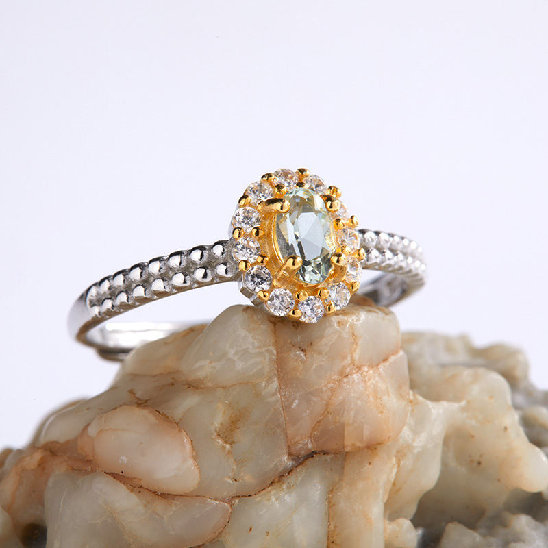 Natural Gemstone S925 Sterling Silver Ring Inlaid with Natural Aquamarine Ruby Tanzanite Open Ring Silver Jewelry