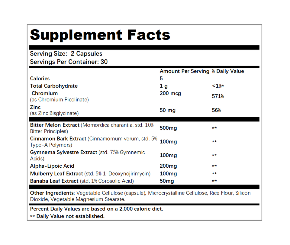 Complesso Naturale a Base di Erbe per il Supporto della Glicemia con Cromo Picolinato, Estratto di Melone Amaro, Gymnema e Acido Alfa Lipoico