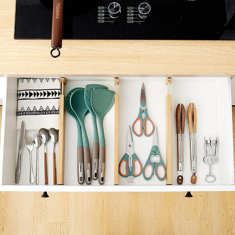 Casa naturale di bambù espandibile regolabile cassetto Orgaizner divisore separatore per cucina camera da letto bagno cassettone ufficio