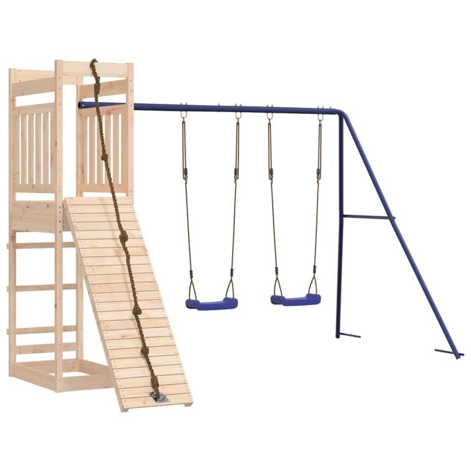 Natural Pine Blue Outdoor Playset with Swings