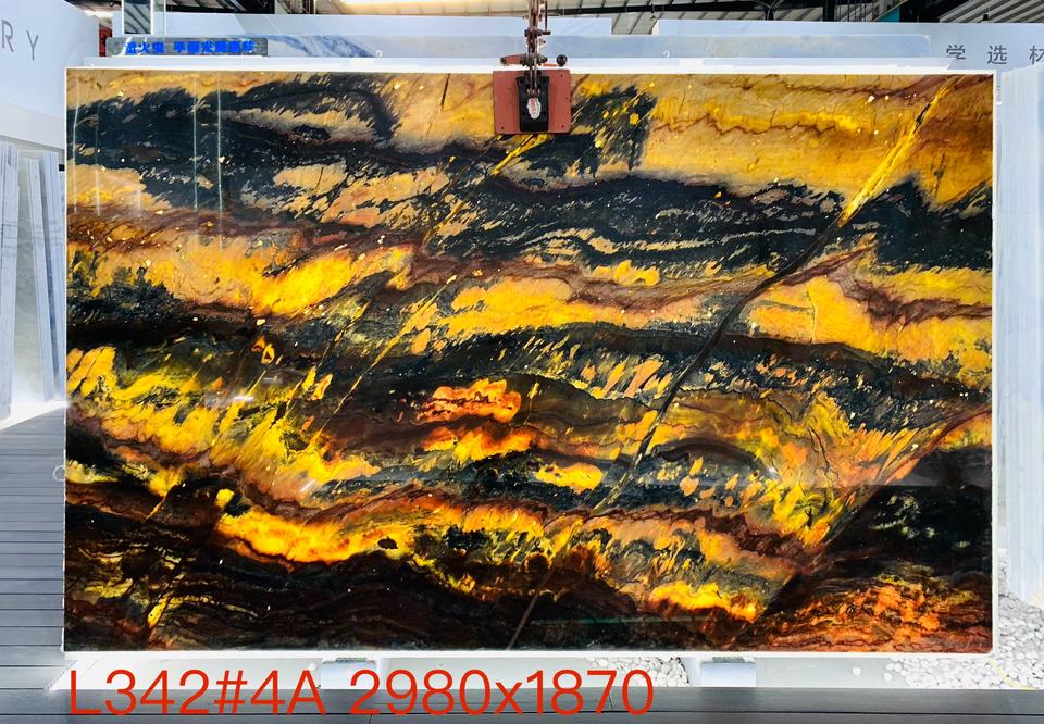 Lastre di Marmo Dorato Jacaranda Brasiliano Naturale Lucidato, Design Moderno Impermeabile per Bagno, Villa, Appartamento, Garanzia di 1 Anno