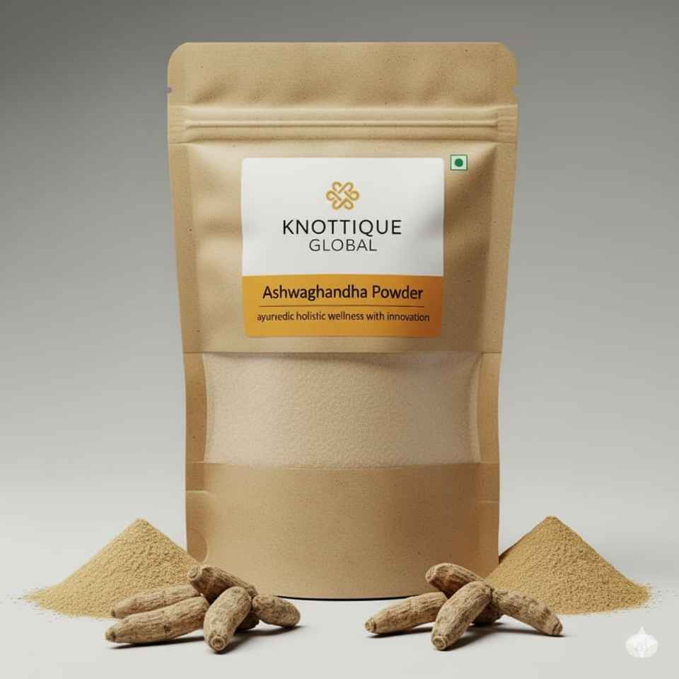 Radice naturale Ashwagandha polvere raccolta da fattorie biologiche per preparazioni tradizionali e culinarie dall'India
