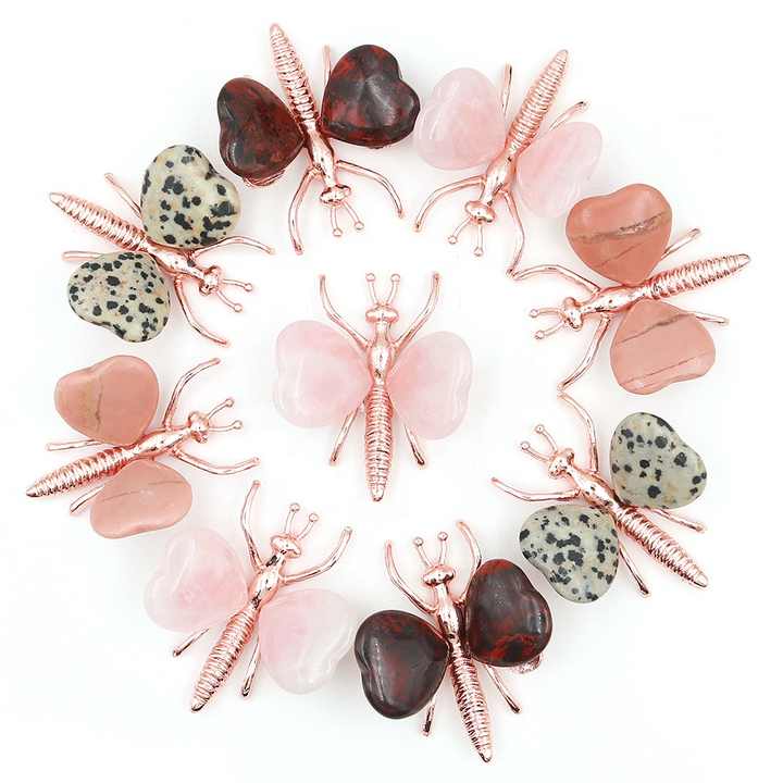 Natural Rose Gold Butterfly Crystal Heart Wing Ornament Home Decor Gift Wholesale Healing Stone Chakra Energy Spiritual Craft
