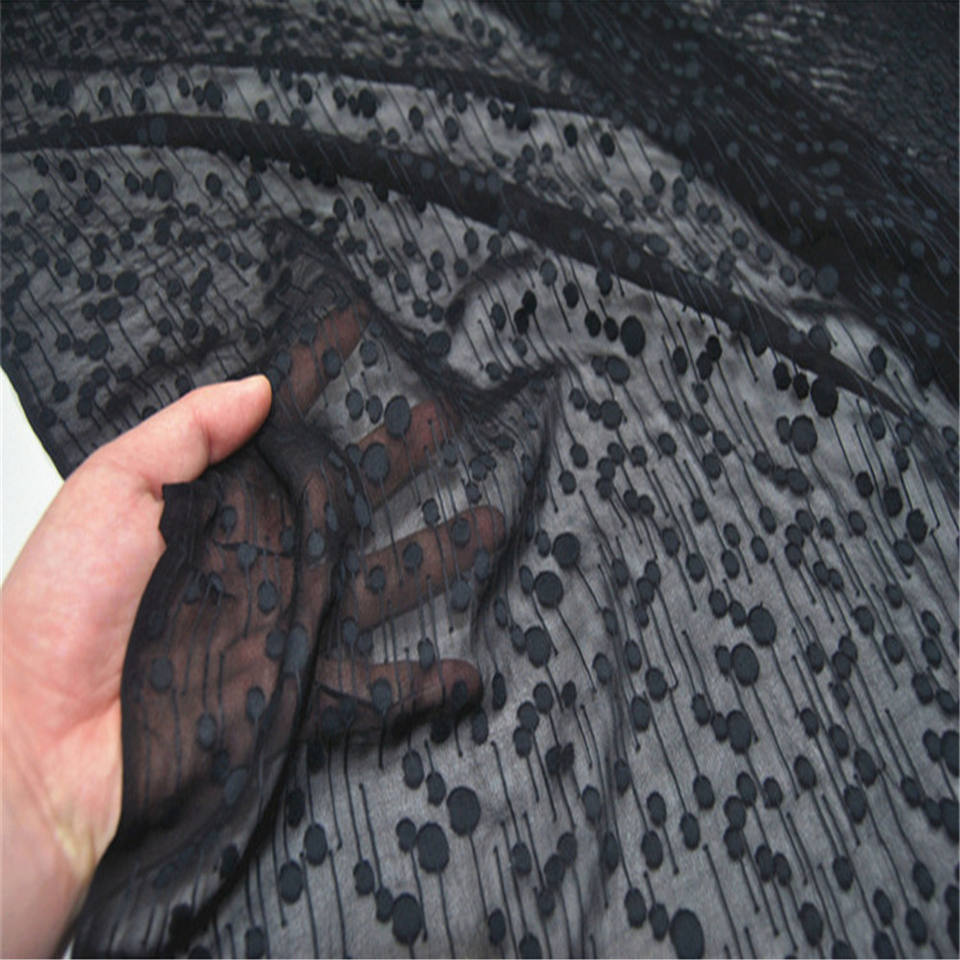 Natural Safe Luxury Black Silk Jacquard Fabric Beautiful 10m/m Popular for Girl Women Lining Veil Shawl Shirt